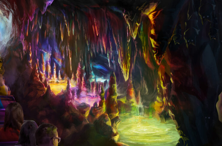 The new art Disney has just published depicts a re-lit first lift hill, with a rainbow of colors illuminating the “Rainbow Caverns.”
