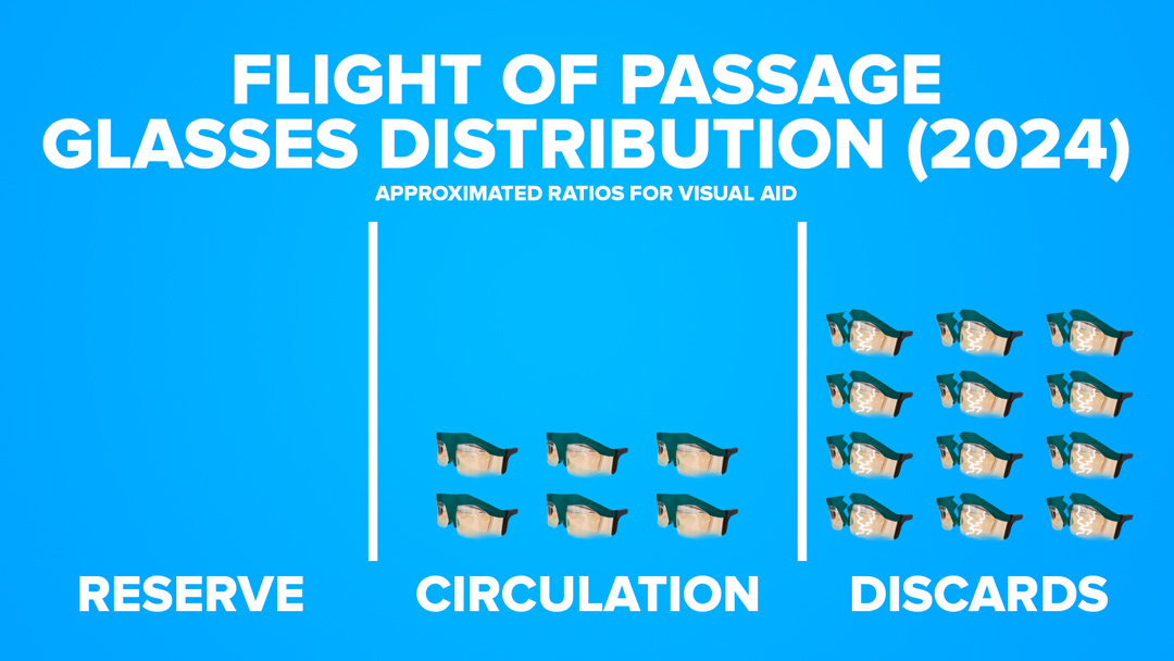 Approximate distribution ratios for Flight of Passage 3D glasses as of 2024.