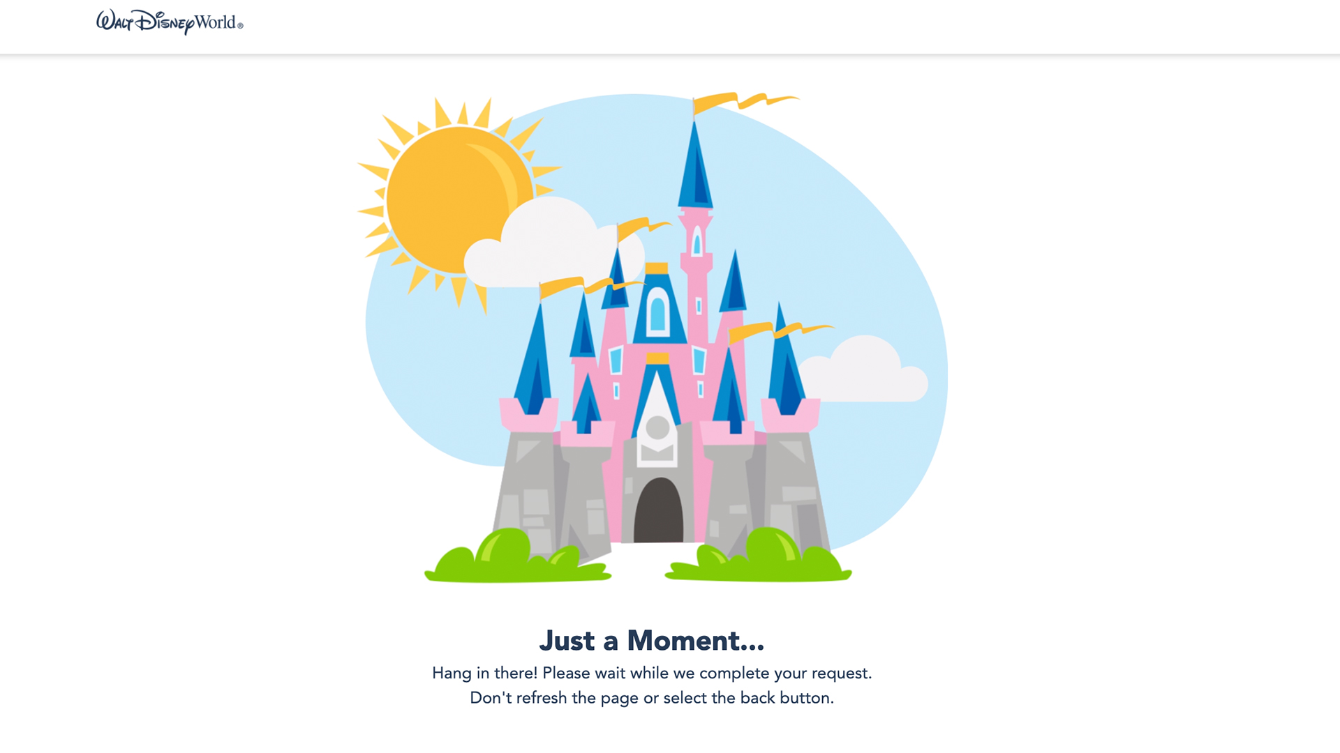 Next, if you have your resort hotel and valid theme park admission linked to your account, you’re ready to go in and secure your park reservations! That is where the agonizing waiting screens await you. To get your reservations as quickly as possible, the following method worked best for us: