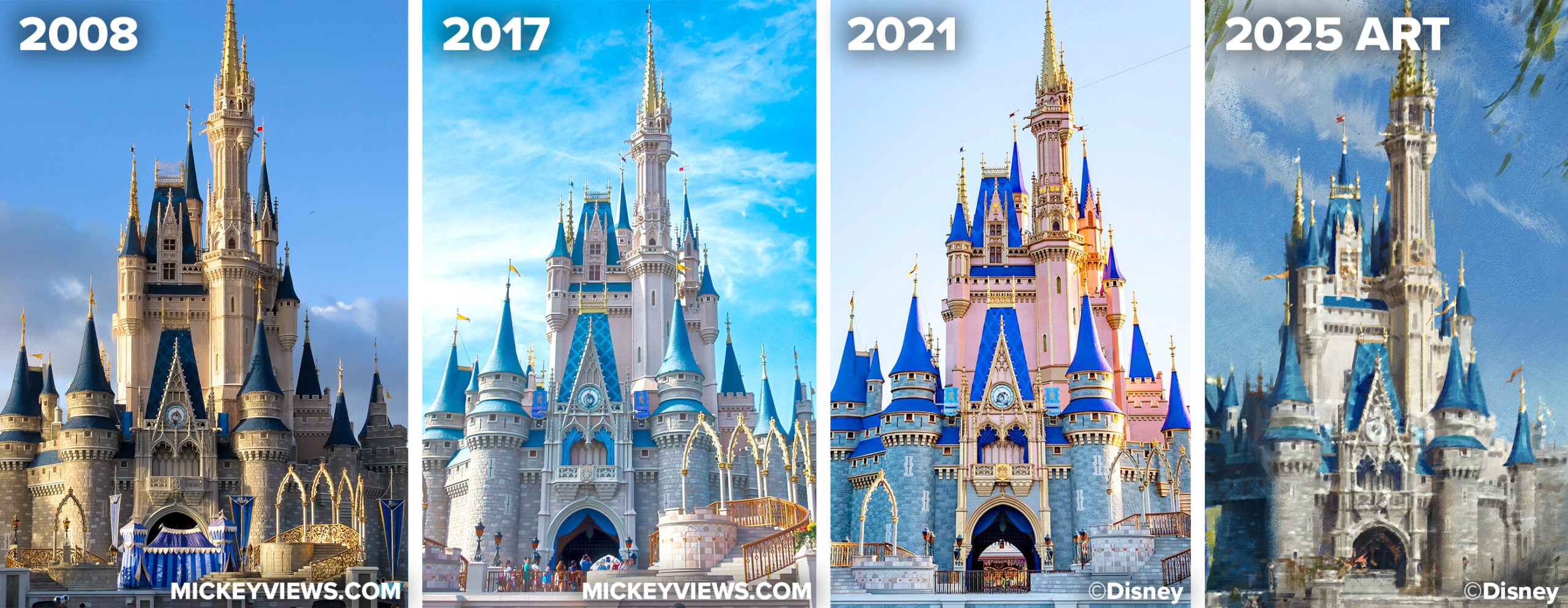 On August 31st, 2025, The Walt Disney Company announced Cinderella Castle at Walt Disney World’s Magic Kingdom will receive a new color scheme. Not just any new paint job, but rather what Imagineering is calling “the most classic castle ever!”