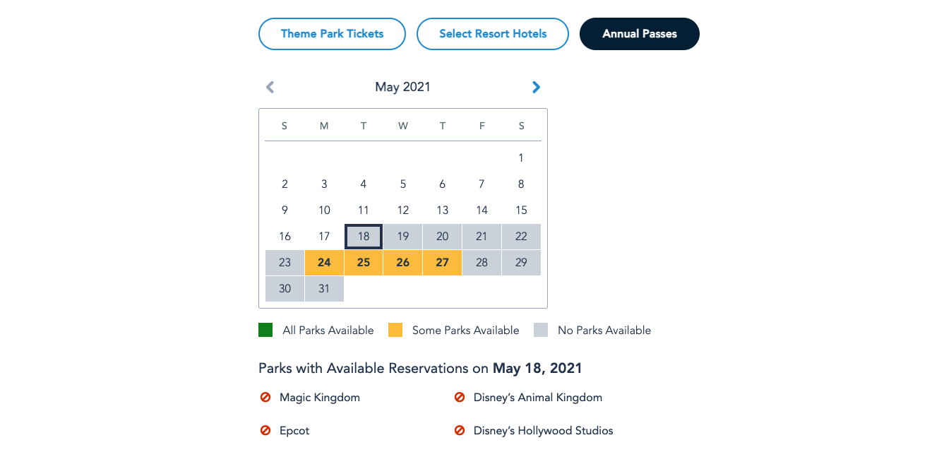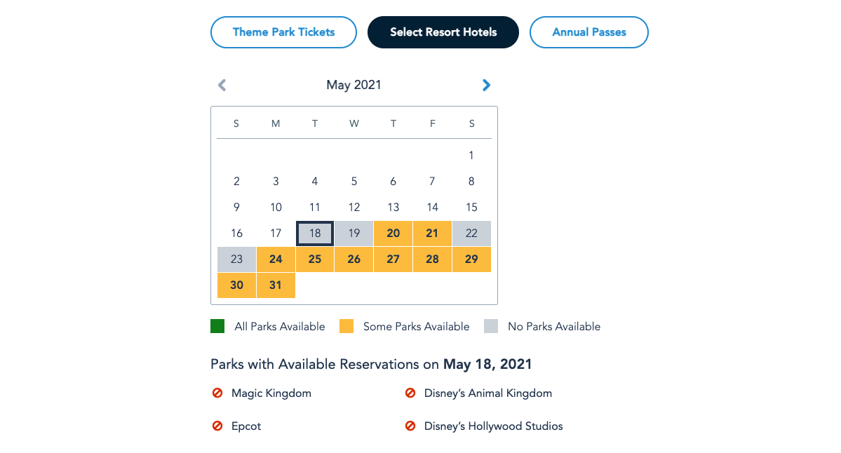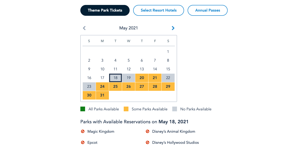 Next week, the only park available for Resort Guests to book is EPCOT. The same is also the case with day ticket holders.