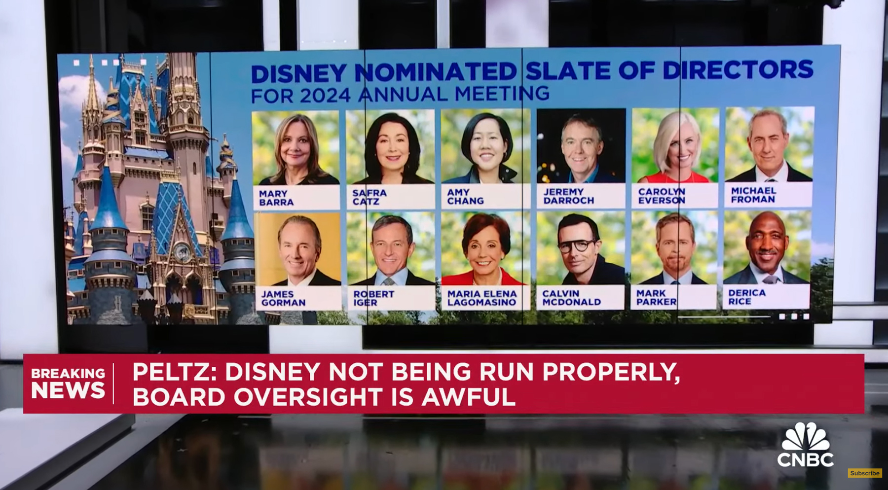 In his opening remarks, Peltz emphasized he and his beneficiaries love Disney, but are saddened the board does not welcome their input. “Our goal is just to work with them, to help them, and to help them make the company better,” the Trian CEO said. Peltz’s partners in this proxy fight include former Marvel Chairman Isaac Perlmutter and former Disney CFO Jay Rasulo.