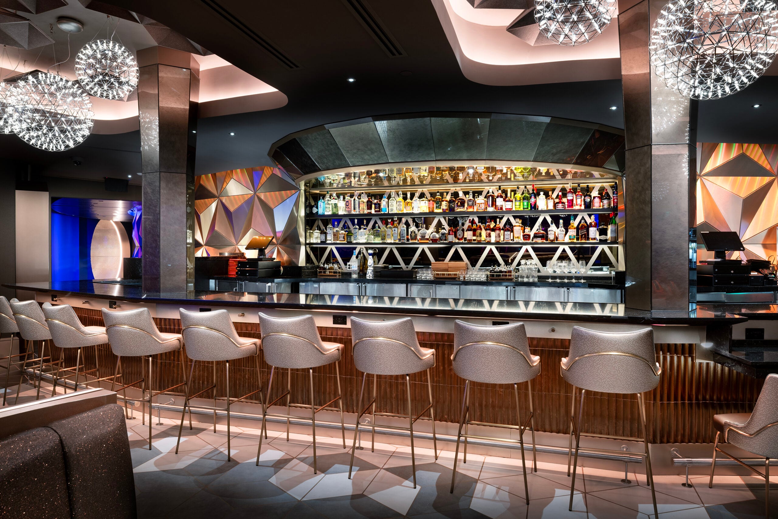 Opposite the window overlook you’ll find the bar, complete with plush seating and modern styling.