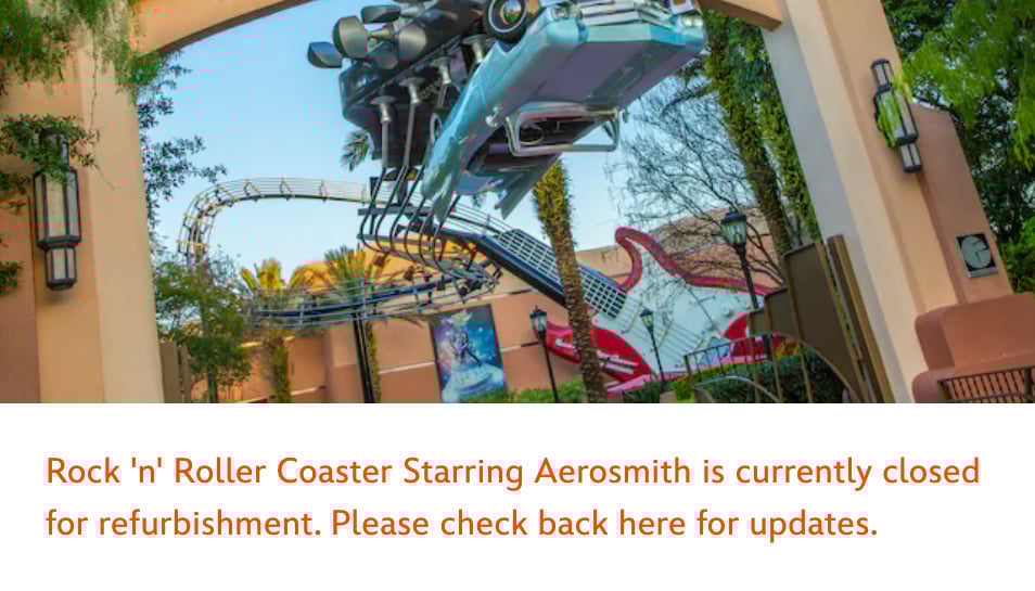On January 8, 2024, Rock ‘n’ Roller Coaster Starring Aerosmith closed at Disney’s Hollywood Studios for a lengthy refurbishment. A Disney spokesperson claims the Florida attraction will be back “Summer 2024,” however, no date has been specified.