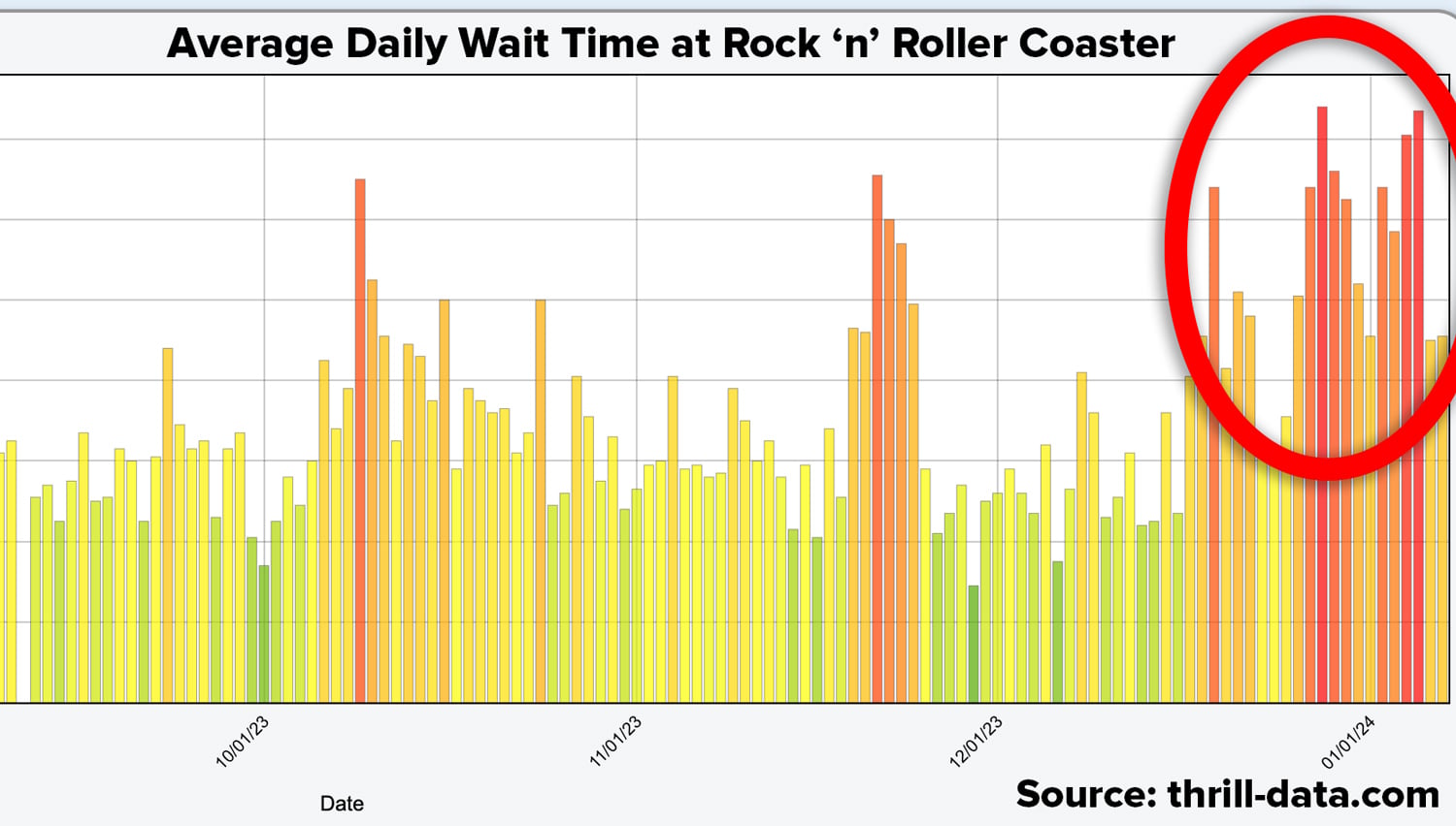 In the final two weeks of operation (December 25th, 2023 – January 7th 2024), Rock ‘n’ Rollercoaster averaged 1 hour and 17 minutes worth of unexpected downtime per day according to ThrillData. On December 27th, the ride was reported offline for a staggering 3 hours and 12 minutes during peak holiday crowds.