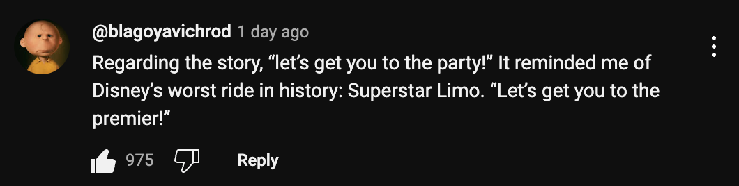 While on the topic of story, one YouTube user makes an astute association between the plot of this new attraction and one of Disney’s most famous attraction blunders of all time, “Superstar Limo,” which had a similar premise.