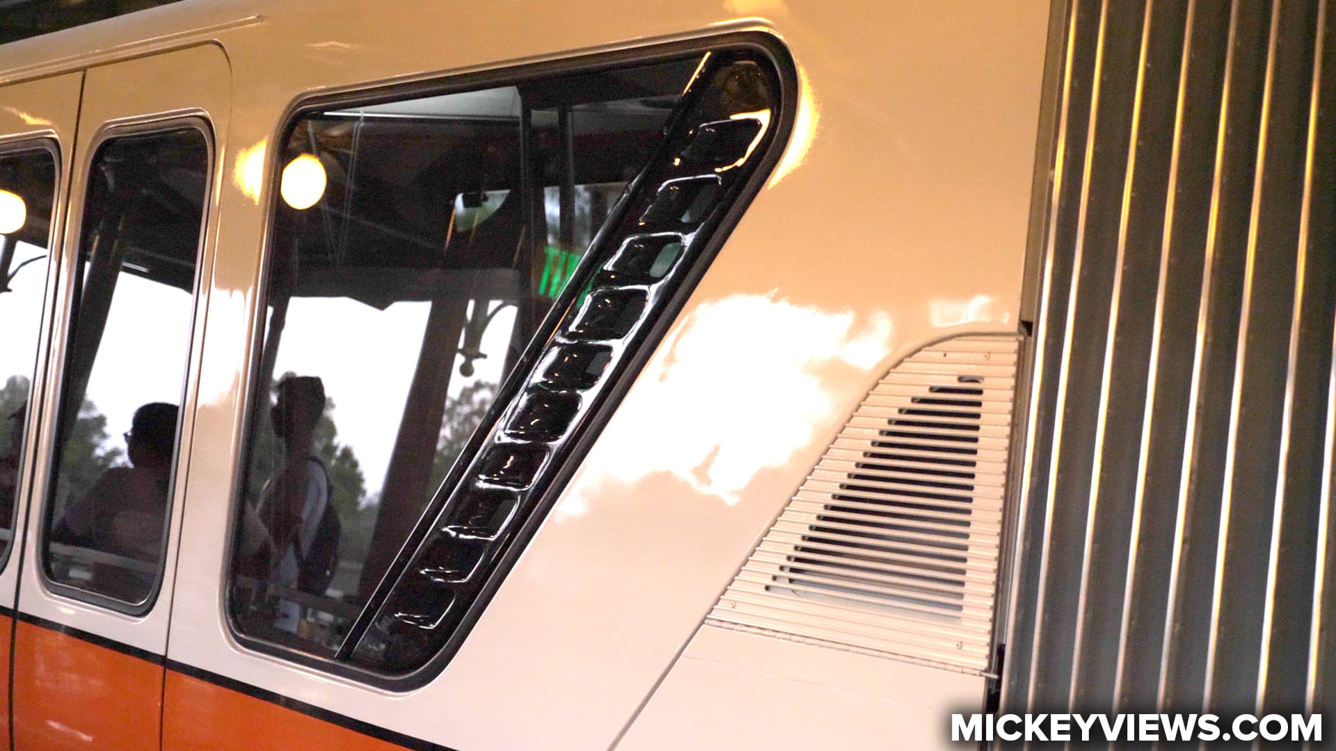 Throughout Disney’s ongoing refresh of the Mark VI monorail fleet at Walt Disney World, we’ve seen dramatically improved interiors and even some exterior improvements. Monorail Orange, which returned to operation last weekend is no exception. Monorail Orange is now sporting the same updated interior as the other refurbished monorails. The outside received some more unique changes, where now the orange exterior stripe includes black deltas. These deltas help make monorails more easily identifiable from a distance. Also on the exterior, the monorail’s cabin air vents have been updated with new gloss black vents.
